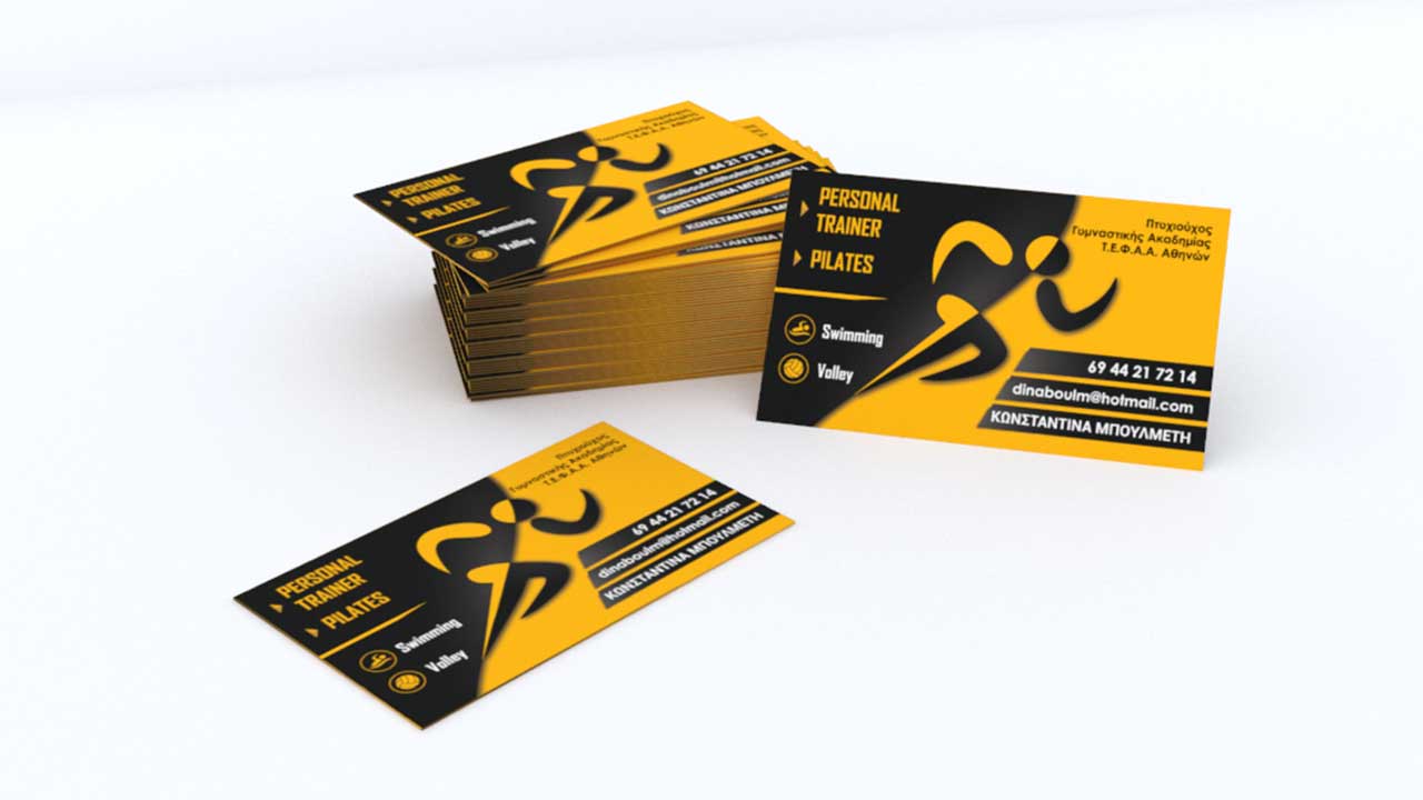 Personal trainer's business card! Boulmeti Dina is a personal trainer in Argolis, Greece! Specializing in pilates, volley, swimming! We were asked to design a logo that would inspire the receiver of this card to start working out!