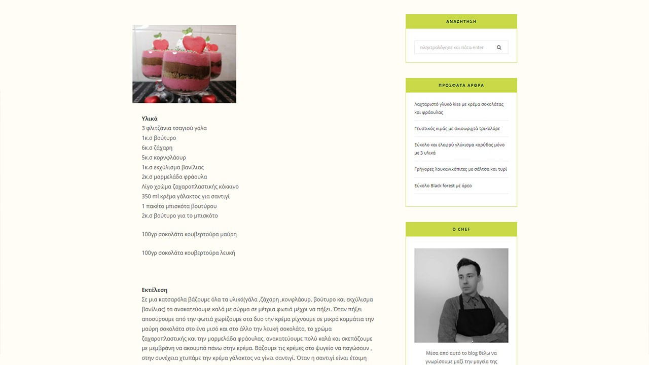Δημιουργήσαμε το blog μαγειρικής του Δημήτρη Παυλάκου με τέτοιο τρόπο ώστε να εκπέμπει την ίδια δημιουργικότητα και ομορφιά όπως και οι συνταγές του.